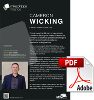 Prior to commencing with Mike Phipps Finance, as a Senior Commercial Relationships Manager with a larger regional Australia bank, Cameron specialised in the provision of finance and services to Management and Letting Rights operators.